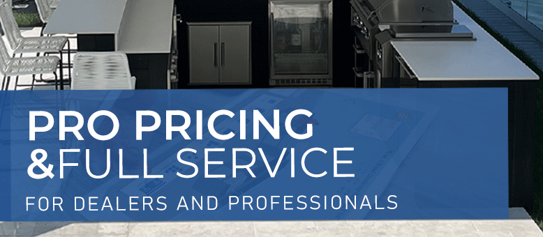 Connect with us for a complimentary virtual design session or visit a local showroom to explore our collections. Together, we’ll discuss your project goals and create a custom 3D layout featuring your favorite grills and accessories, giving you total confidence in your design.